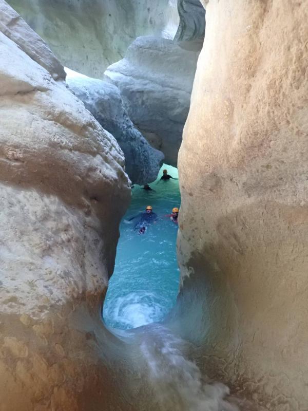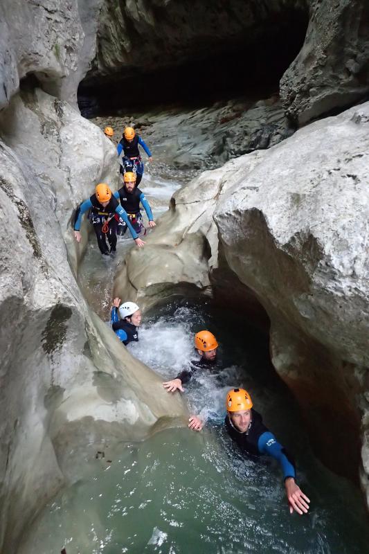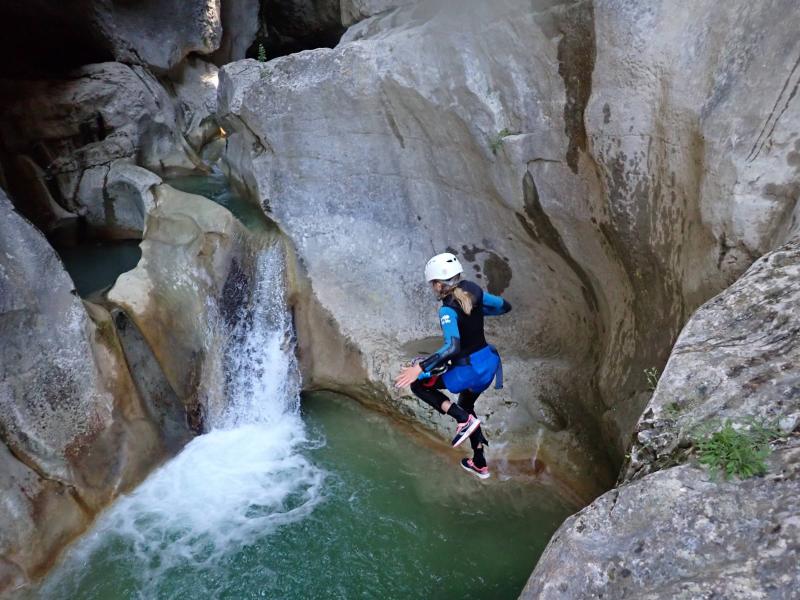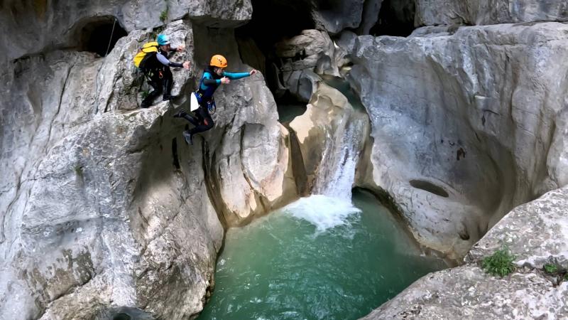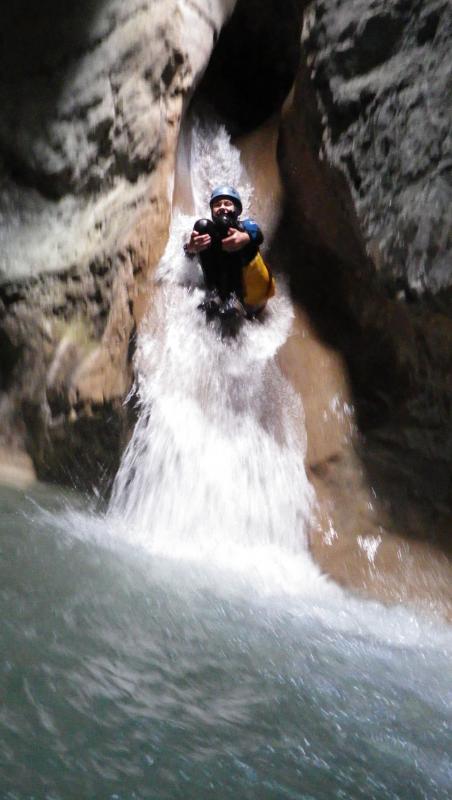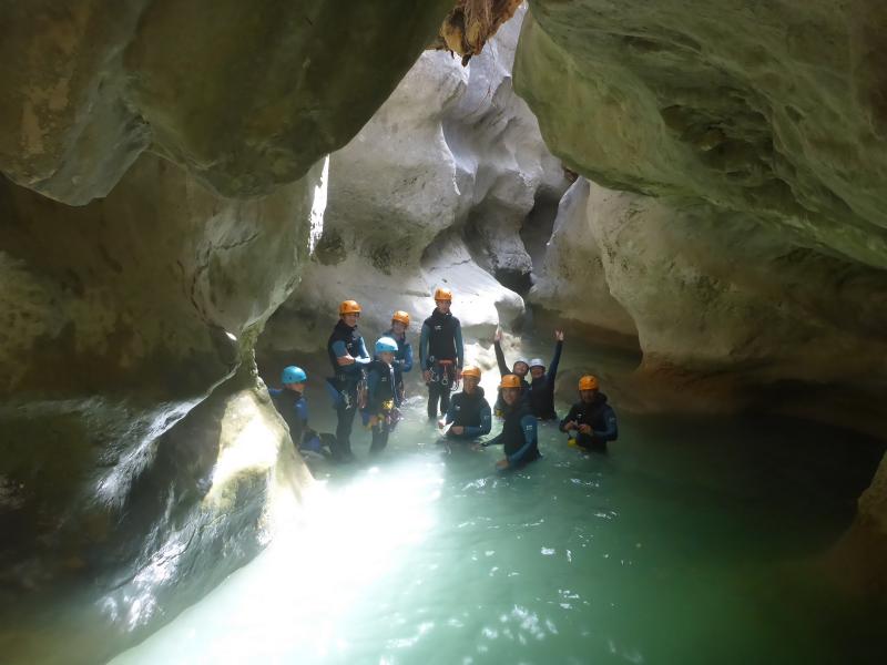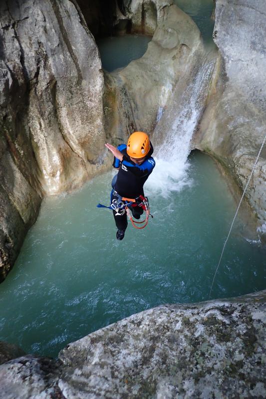 Magnifique petit canyon d’initiation proche de Castellane. Ici toboggan, sauts et rappel sont au programme! Le petit truc en plus : photos gratuites faites par les guides!