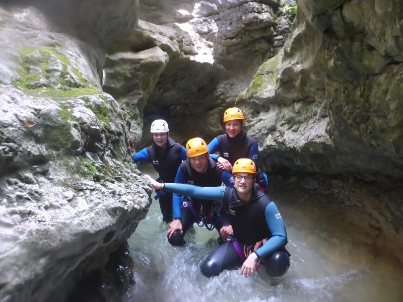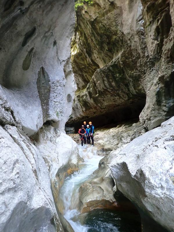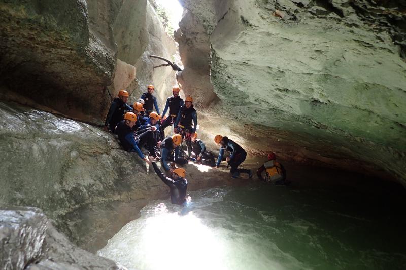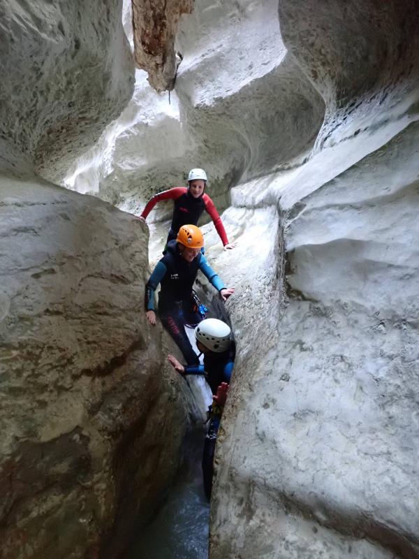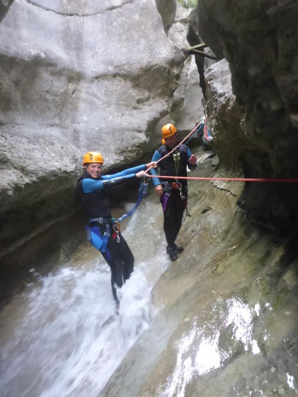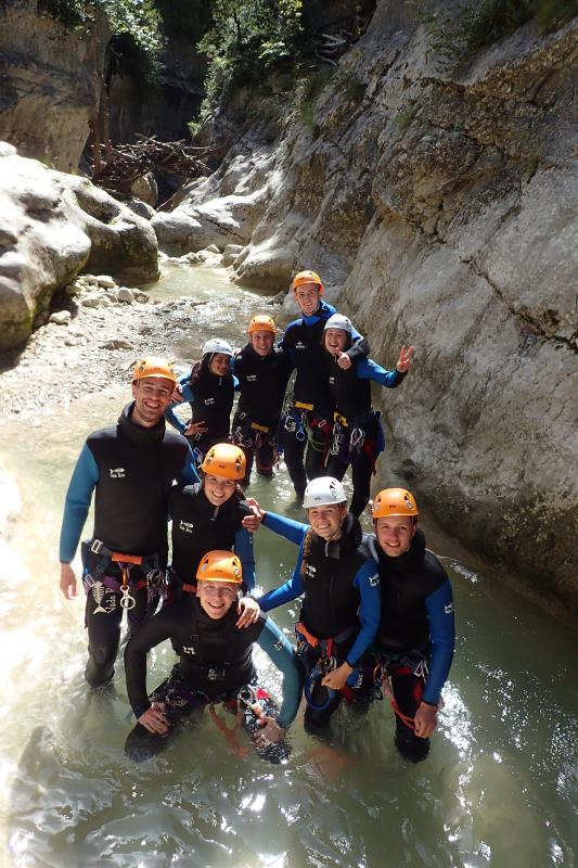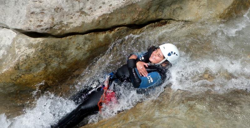Magnifique petit canyon d’initiation proche de Castellane. Ici toboggan, sauts et rappel sont au programme! Le petit truc en plus : photos gratuites faites par les guides!